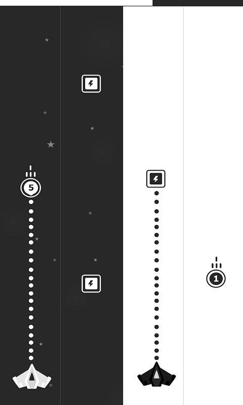Two Falcons是一款休闲益智类游戏,Two Falcons手游玩家双手控制两架飞机,在4条飞行轨道上击败敌人,获取能量。其实一比较就会发现,这就像音游的四个键位,十分考验双手的协调性