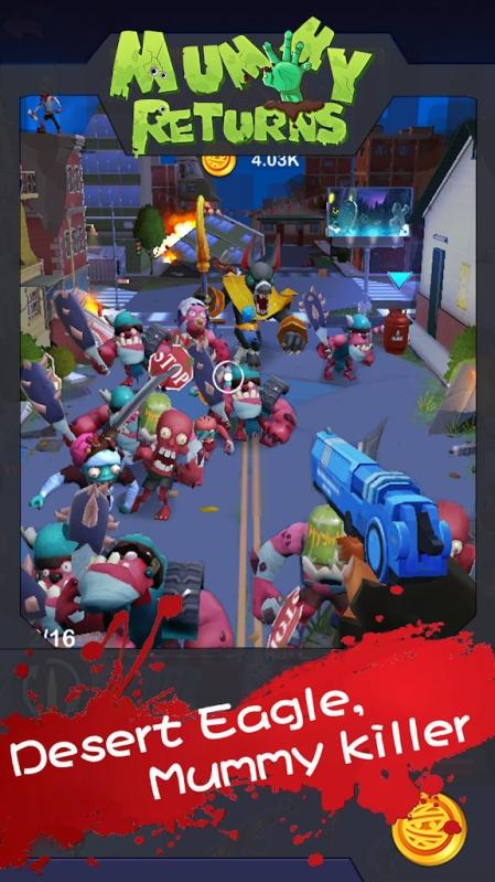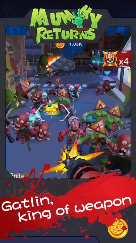 第三次世界大战的打响,结束了人类百年来的繁荣与和平,将世界变成了人间地狱!! 邪恶的神秘组织为了赢得战争,打破了远古的禁忌,召唤出了木乃伊!! 作为一个名军人,你需要拿起武器,保卫家园,守护你挚爱的家人!! 游戏特色: ★第一人称射击视角,让你体验到射击的爽快感 ★三系枪械各有特色,后续版本陆续增加中 ★大量造型各异、行为独特的木乃伊,等着你击杀 ★真实物理反馈,满足一枪击飞木乃伊的非凡体验 ★挂机收益,让你轻松获得金币 ★大量新枪械等着你去解锁和升级 提示 :