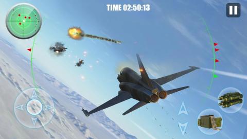 驾驶你的超级战斗机,开始你的征服天空之路! 向敌人展现你的飞行实力,躲避他们袭来的飞弹,并华丽的击败他们吧! 想享受驰骋在广阔天空的快感吗,想要成为天空的霸主吗,那就快来体验这款游戏吧! 游戏特点: *更多飞机等你驾驶: 10架世界知名的战机等你来体验!JC-20,F-22等空中王牌战机也在其中,战机按照星级排名,最低2星级,最高5星级! *强大的武器升级系统: 让你的战机变得更强,装备火力强劲的武器是必不可少的!机载式机枪,远程制导导弹,多目标导弹,诱惑导弹,战机板甲等多项武器与部位可以由你的喜好任意改装和升级。如果你没有足够的金币去购买高等级的武器装备也没关系!你可以将低等级的武器升级,同样可以达到高等级的效果,甚至更强! *更多关卡由你挑战: 游戏目前共计8个地图,8场海岛战役,每场战役有6个关卡,共计48个关卡等着你来挑战。快驾驶你的战机来加入这场空战,征服这些对手!我们会不断更新关卡,保证让玩家体验到更有趣更刺激的游戏体验! *更多的敌人: 这不是一场简单的空战,这还是一场海陆空全方位立体式的战役!在你驰骋于天空之时,还会有敌方海上的战舰和陆地上的堡垒也会向你发动攻击。 *简单的操作模式: 虚拟摇杆控制飞机移动方向,上下按钮来控制飞机速度,点击武器装备按钮即可对敌人发动攻势! 现在下载Real Fighter War - Thunder Shooting Battle,感受全方位的3D天空混战! 灵活操纵你的飞机,摆脱敌人发射过来的飞弹! 提示 : 【说明】 使用足够的金币和钻石不减反增!