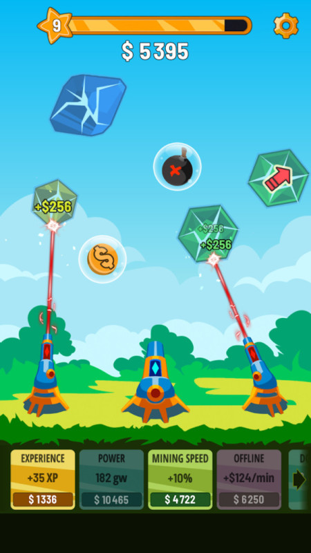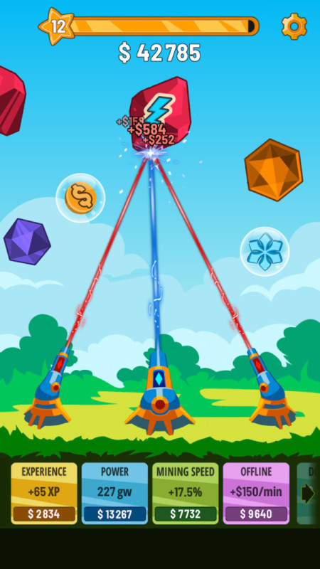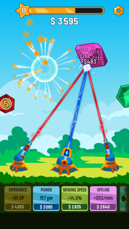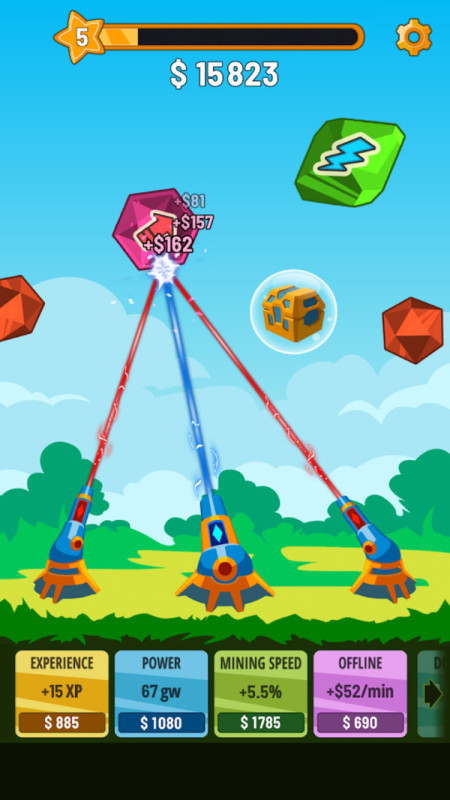 水晶大炮射击是一款放置玩法的塔防射击类游戏。玩家将通过放置防御塔来射击从天而降的水晶。同时空中还会漂浮一些道具和金币,通过手指点击就可以收集到了。你可以不断你的升级炮塔的威力,将两个相同的炮塔进行合成还能得到更加强力的炮塔。喜欢的话就来下载吧!
