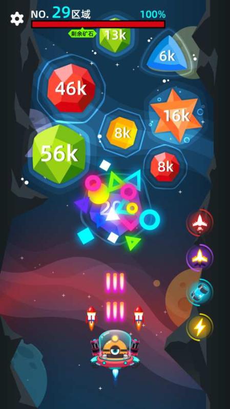 《星际召唤》这是一款上手体验非常棒,能够满足更多游戏朋友的热爱,各种有趣的武器以及攻击道具,极大的丰富了游戏的内容和玩法,是一款非常好的休闲解压的射击游戏!游戏中通过飞船发射器,击败各种能力的宝石,不同副武器使用,让你体验满屏爆炸的快感和刺激。游戏操作简单,只需要使用飞船发射器对准宝石进行射击,消灭宝石,可获取更多金币,用来升级高等级的武器,即可防御入侵,丰富的关卡和敌人让你欲罢不能,消灭疯狂来袭的宝石,赶快来调整吧!