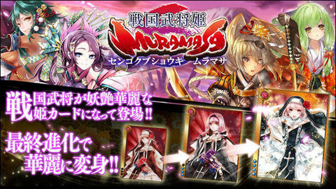 《战国武将姬》(戦国武将姫-MURAMASA-)是由日本最大的手机游戏商“DeNA”推出的战国风RPG战斗卡牌游戏,属“Mobage”(梦宝谷)社交平台。本作最大的亮点在于,登场的武将角色都是典型的日式萌化御姐化的全美少女角色,武将在不断升级强化后还会变身(每个阶段有不同画风卡牌),而且包含恋爱冒险的游戏内容,每个武将都有爱情值。