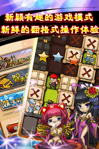 这是一个全新的游戏体验,不是千篇一律的自动战斗,不是简单的数值比较,游戏核心的战斗系统是一个新颖有趣的游戏模式,独创奇异战场,不是棋盘更胜棋盘,让你运筹帷幄,指尖施谋遣将,不怕智慧无用武之地,就怕游戏让你停不下来!