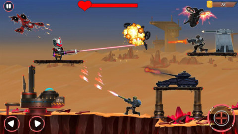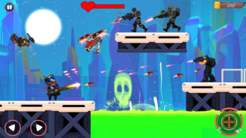 金属风暴部队是一款卡通风格动作射击类冒险游戏。玩家将在游戏中化身成为未来战士,使用高科技武器将敌人全部消灭。游戏的操作是非常简单的,灵活的躲避敌人的攻击,不要让自己受伤。你可以使用金币来解锁更多的武器,喜欢的话就来下载吧!