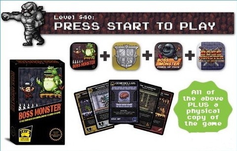 《王者怪物》( Boss Monster )是一款地牢建设卡牌游戏,玩家可以使用怪物卡和房间卡,建立一个地牢,建立好地牢后的任务是吸引想要成为英雄的玩家到地牢内并击败他们。