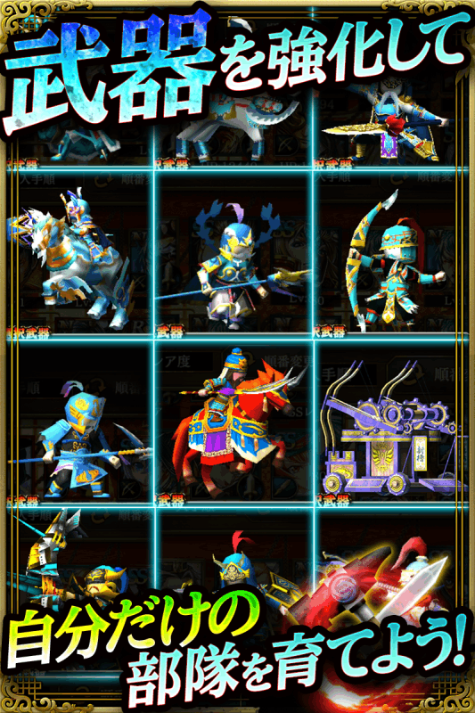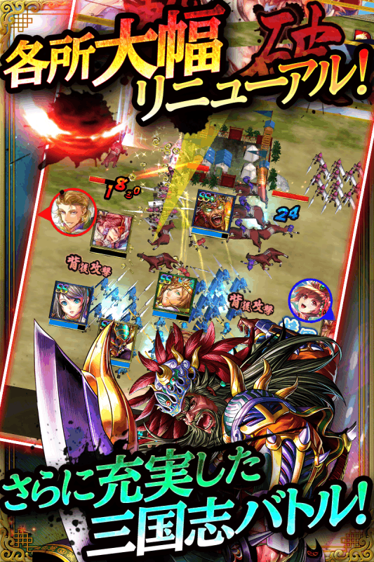 三国志リアルタイムストラテジーが、コロプラから登場! 軍勢を直接"触って"動かして、緊迫のバトルを勝利へ導け! 軍勢強化の鍵は、拠点となる国づくり!あなただけの国を作ろう! ---------------------------------------------------------- コロプラの三国志ゲーム 『軍勢RPG 蒼の三国志』のダウンロードは無料! 面倒な登録や難しい操作も不要! ---------------------------------------------------------- ~三国志の歴史にその名を刻め!~ 時は2000年近く前の中国、後漢の時代 朝廷の中では佞臣がはびこりは乱れきっていた そのため人々は貧困し、この時代を憂い、新たな"英雄"の登場を待ち望んでいた―― ★直感的なスワイプ操作が気持ち良い! 軍勢をスワイプ操作で動かしながら敵を攻撃しよう! 他では味わえないバトル体験を楽しもう! ★国を育てて、軍勢を強化しよう! 施設を建築して国の力を上げることが、軍勢強化の鍵を握る! 体力を上げる「兵舎」、攻撃力上げる「訓練所」、知力を上げる「学校」など、種類は様々! あなただけの国を作り上げよう! ★武将を集めて最強の部隊を作ろう! 属国、奥義、兵種といった様々な要素を持つ武将は、バトルや召喚で獲得できる! 「呂布」や「関羽」といった強力な武将を集めて自分だけの最強の軍勢を作り上げろ! ※一部の召喚には龍玉の購入が必要となります。 ★全国のプレイヤーとのオンライン対決が熱い! 同期通信を使って、リアルタイムで全国のプレイヤーと勝負! レーティング上位入賞で、様々な報酬を獲得するのだ! ★友達の国を訪問してゲームを有利に進めよう! 友達の国に遊びに行くと"盟友ポイント"が獲得できる! 盟友ポイントを貯めれば、新たな武将を召喚することができるぞ! 多くの友達と共に最強を目指せ! ★★★★★★★★★★★★★★★★ 『軍勢RPG 蒼の三国志』はAndroid タブレット端末にも対応! 大画面でド迫力の軍勢バトルと国づくりをお楽しみください!! 1.3.47 ・戦に機能を追加しました。