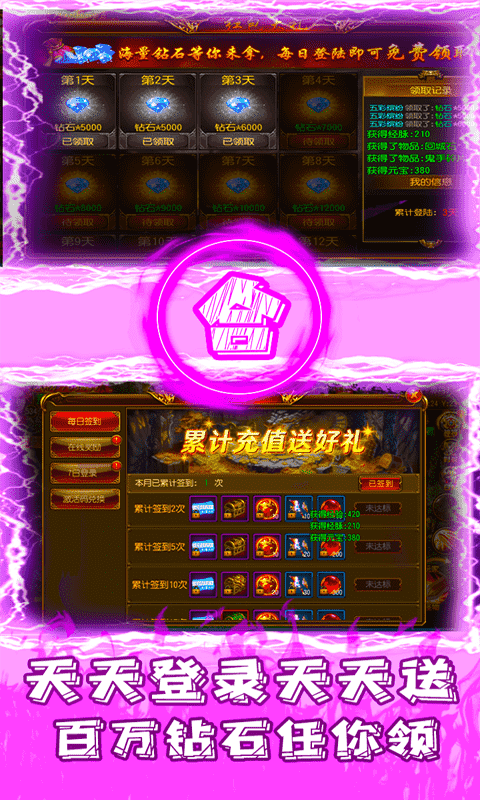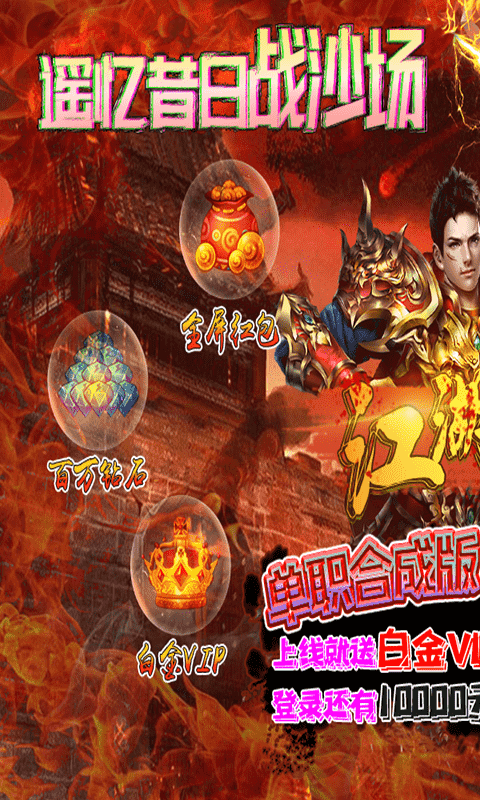 ★上线送白金VIP,100元充值卡,元宝*5880000!