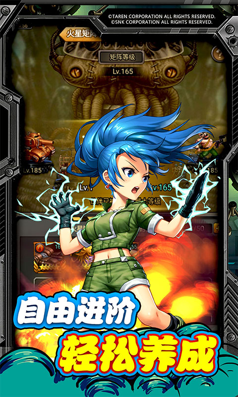 SNK正版授权的放置手游《合金弹头:集结-GM送10万充》上线啦,上线赠送GM特权,登陆累计赠送10万真充!这里有丰富的合金角色,甚至连小兵都能培养,只有你想不到的,没有你抽不到的!阵容属性,灵活变换,从容面对各种敌人!放置玩法,挂机升级,游戏时间由你掌控,不当合金工具人!共享等级,一键重生,从此不再为阵容劳心费神!这里有你没听过的合金故事,大反派莫顿的过往,会波动拳的俘虏老头的真实身份等你来一探究竟!这里还有我们对合金弹头永远不变的热爱和激情,少年,行动开始了,快来召集你的合金伙伴,加入我们的征伐队伍中吧!