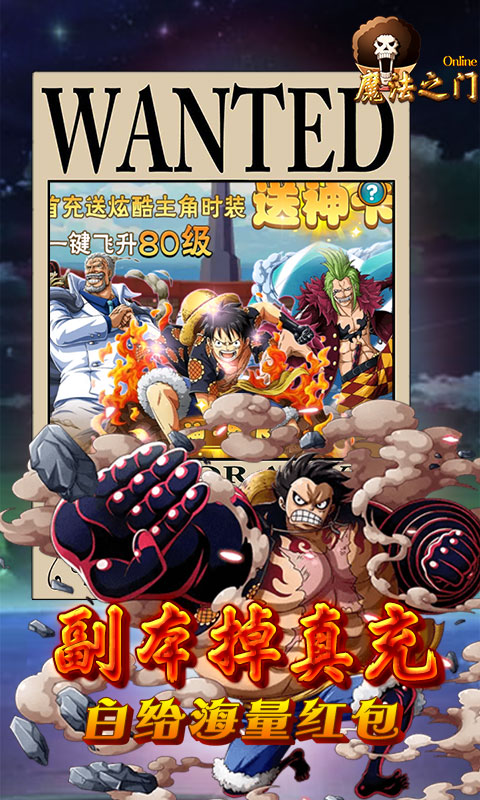 《魔法之门OL-副本掉真充》高度还原海贼动漫,由行业翘楚团队精心打磨创做,正版授权,策略卡牌回合制手游,激情四射的游戏体验,花里胡哨的游戏场景,眼花缭乱的游戏技能,上线福利多多,千元真充,珍贵材料,免费送神卡,副本掉落真充,首冲翻倍,开启无限资源商店,无限领取奖励,还在等什么呢,来征服这个新世界,成为这片大海的王,成为海贼王的男人!