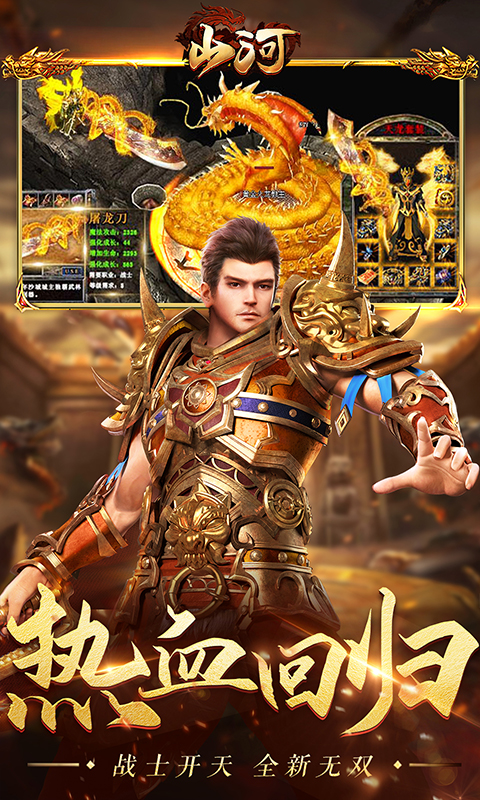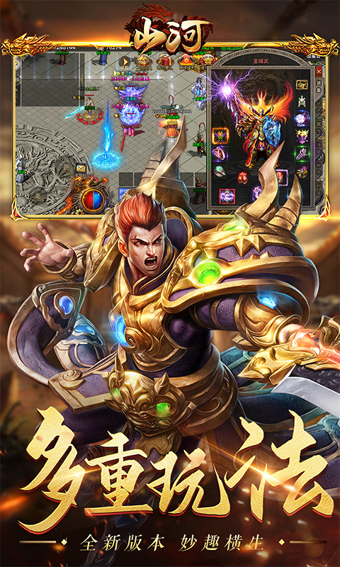 《山河-高爆无限刀》是一款全新的传奇游戏,开局就送双神技!各种送福利不停送!全新地图,武侠玩法,各种绝世武功遍地爆!