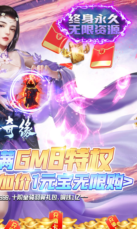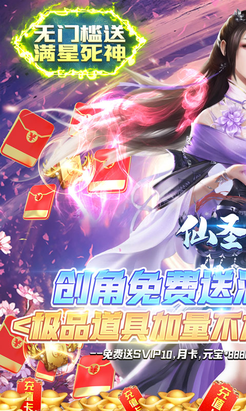 《仙圣奇缘-送满星死神》登录壕礼无门槛送满星死神!创角免费再送满GM8特权,GM商城全场极品道具加量不加价,统统只要1元宝!终身永久无限资源真无限开启,一次购买终身无限免费领,再也不用担心元宝不够花!开局免费送十阶坐骑羽翼大礼包,送SVIP10,月卡,神兽灵宠,元宝*888888,铜钱1亿!98送直升GM6特权,送20倍真充,提前解锁高阶GM商城,极致体验1元宝无限购!全地图自由飞行,跨越千山万水,千人同屏,暴燃仙界大战,华丽百变时装,伙伴灵宠等百变玩法,畅游最精彩的仙侠世界。
