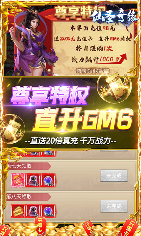 ★充98送直升GM6特权,送20倍真充,提前解锁高阶GM商城,极致体验1元宝无限购!