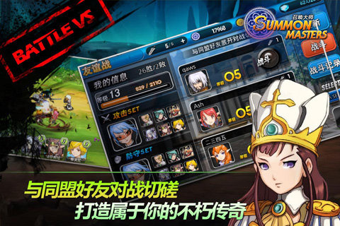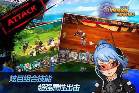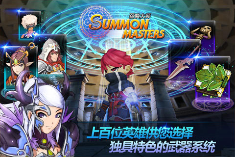 《召唤大师》设定了12种职业150多种英雄组成,采用舒适的界面设计,画面色彩亮丽,人物角色清新可爱,是典型的卡通动漫风格。