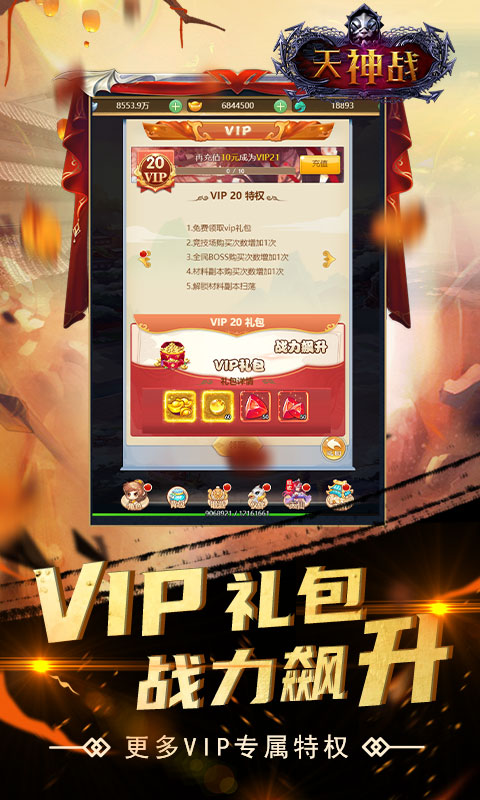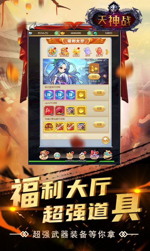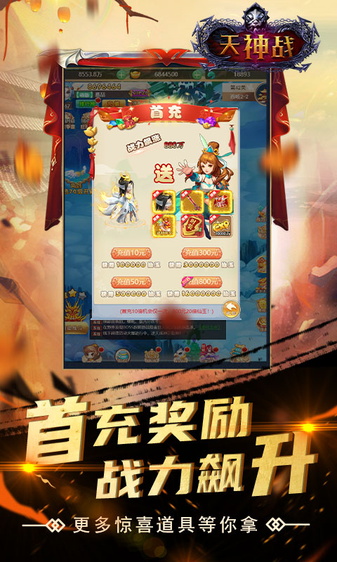 《天神战-SSSSR最强伙伴》是一款Q版回合制放置游戏,开局就送VIP、SSSSR宠免费送!精美2D Q版人物设计,搭配传统神话故事剧情,实力打造精品回合制经典!酷炫坐骑共同潇洒三界,独有万千道具自由回收,多样经典回合玩法无穷乐趣!