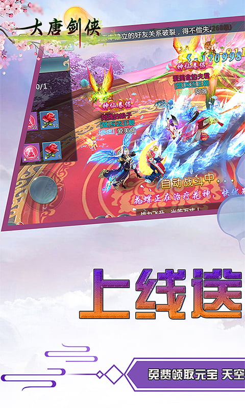 剑破苍穹,幻舞玲珑!2022年度唯美仙侠手游《大唐剑侠-送GM王者版》,带你走进一个恢弘大气的仙侠新世界。三大职业,相互抗衡,相互制约,更加平衡!百变时装——酷炫外观随心搭配,让你独一无二,赚足回头率;神翼、法宝、灵宠助阵,打怪PK更轻松!千人同屏,刷怪抢BOSS,无绑掉落,全开放自由交易!离线挂机,经验、赚钱永不停,真正做到好玩不累!劲爆福利登录就送VIP!海量豪礼拿到手软!传承古韵经典,融入大量国风元素,展现独特的东方玄幻韵味。唯美仙侠新世界的大门已经开启,仙侠之旅等「你」踏足!