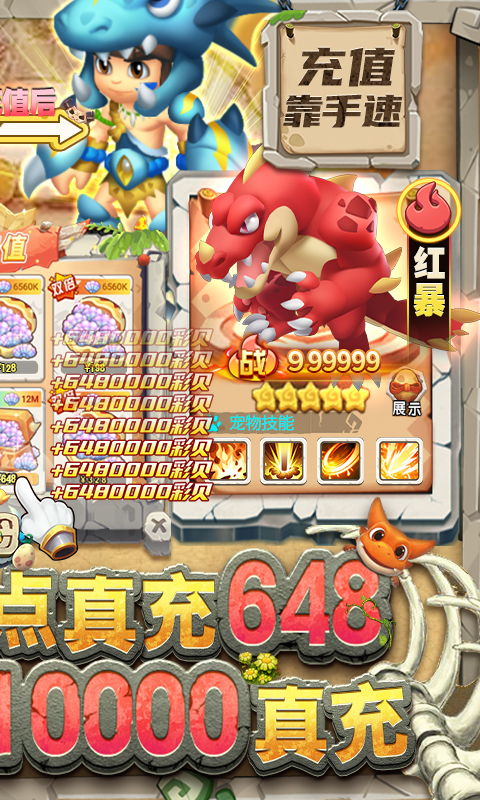 ★开局送5星红暴,输入礼包码可以兑换 5星火系红色暴龙类宠物