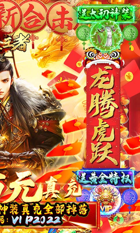 ★后缀说明:上线即可领取无限真充大礼包,每天均可使用!超爽打金经验up爆率up↑BOSS必掉真充卡,神装充值全靠打!输入礼包码VIP2022即可领取虎年贺岁神兽大礼!