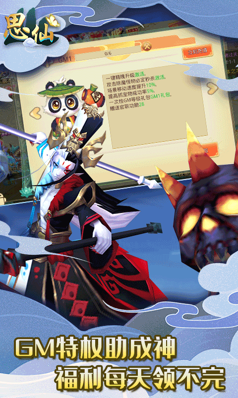《思仙-送GM无限充》每日扶持,丰厚的扶持奖励可领,道具、抽宠,真充卡送不停,GM特权,真正完全开放的GM特权功能,让你掌控全场,无限特权,游戏里开通无限特权,便可无限制领取特权专属道具,无限资源爽不停!,超强宠物,比传统回合制更加强大的宠物,摒弃复杂的宠物合成,普通宠物都可以拥有15技能,优惠福利,多种福利活动狂送高价值奖品,掉落充值,真充卡BOSS掉落,天天都有新体验,爆率全开,幻化觉醒神技等道具游戏内掉落产出,天天送连抽和真充,不花钱拿神宠装备,登录送满V的变态回合制游戏!