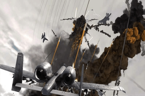 游戏采用全3D模式第三人称的视觉跟进效果,玩家将看到自己完整的战机以及前方的视野,而整个战斗场景所呈现出来的山川、河流、雪山等景物都是那么的真实,在蓝天白云的映照下,一场惊心动魄的死亡之战就此展开。本作采用全3D的画面表现形式,所以有3D眩晕玩家要谨慎体验,当然对于景物的色彩、形式、明暗等完全以现实为标准,同时战斗中的火药、烟雾等爆炸效果十足,让人情不自禁将整个心思投入其中。