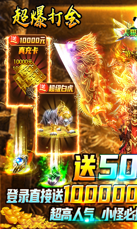 ★创角就有100000000元宝,直接买买买,爽到飞起,超级白虎,打怪无压力