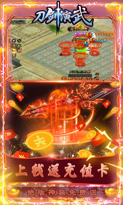 《刀剑演武-挂机兑真充》挂机兑真充,挂机打怪获得的充值卡碎片收集起来,可以在挂机兑真充界面兑换真冲卡,来玩登录就送至尊8,价值千元的礼包免费领取,特权VIP不花一分钱即可升满,打开VIP礼包还有充值卡赠送!上线有千元充值卡,更有GM扶持礼包,绝版GM装备送!这是一款即时战斗类仙侠风格的游戏,各类仙器法宝多重变身,脚踩飞剑、背装绝美翅膀、怀抱绝世美人,手握无上神兵,灭天灭地灭鬼神!