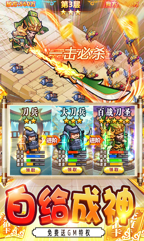 《我的帝国-GM指令万充》逗趣搞笑超人气手游 上线!!!上线就送:[送999万铜币][送毒奶华佗] [送悍将张飞] [送极品符文] [送GM指令] 还有10000元现金真充升级就送,上线送GM指令激活码、在线就送充,抽海量现金卡,元宝拿不停,累充神将免费嫖!数百风格独特的三国猛将、绝色倾城的百媚佳人,让你欲罢不能。独创武将转生,让武将成真成神,战力超越巅峰。过关斩将怒斩绝世名将,扬名天下。传奇战场,挥师百万,与群雄争锋。寻宝探秘,与绝世美人缠绵不休的羁绊。帝王之梦,《我的帝国-GM指令万充》为你达成!
