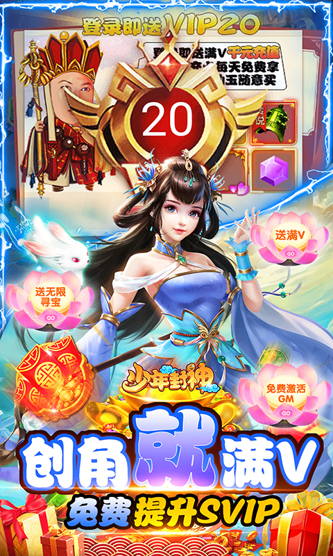 萌版修仙手游《少年封神-送千充特权》新版来袭,这是一款修仙风格的动作角色扮演类游戏,千万封神粉丝期待之作,绚丽画面构建唯美封神世界!新版来袭开局就送千元充值、VIP20,自动挂机爆充值卡碎片,躺拿特权免费兑换特权充值卡。免费领取首充礼橙色神器降魔圣剑、永久紫钻特权(激活后BOSS爆红概率永增)。更有每日送百抽寻宝、免费提升SVIP白领豪华特权礼包,新服七日签到豪礼送800万高战资源。原地起飞,前期一路秒秒秒。这是一个你从未体验过的仙侠世界,快来和一起探索仙界,寻找你心中的伴侣!