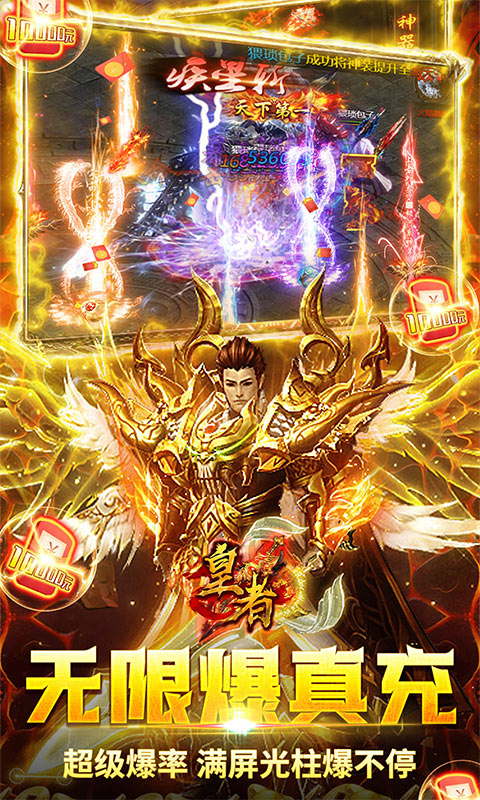 深受百万传奇玩家喜爱的人气手游《皇者-终身返真充》携第四职业---“魔神”荣耀归来!上线免费领取vip15,百万元宝,绝版武圣战神时装套!全新地图、全新福利、全新第四职业专属切割技能,刀刀切割无视防御!全新GM特权,应有尽有!无限每日送真充,绝版时装、元宝、极品装备材料全部免费无限送!福利全新升级,千倍投资,永久年卡超值豪礼领不听!快唤回曾经的兄弟们一起战斗吧!荣耀归来,再创传奇!