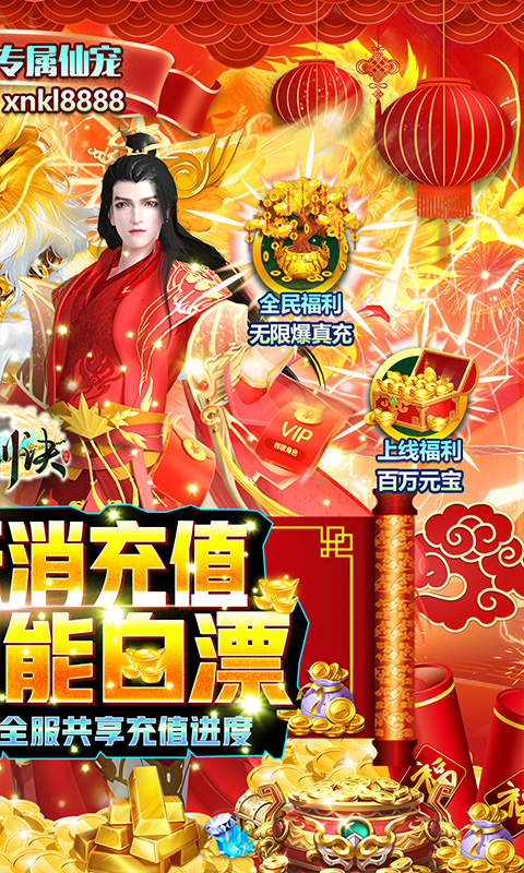 ★创角即送:VIP10、元宝*50000、聚宝币*100、铜钱*1000万、仙侣培养石*200