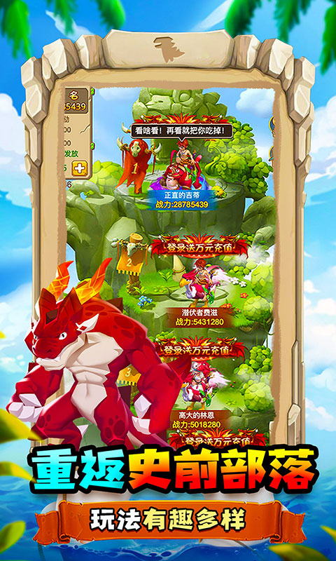 《疯狂酋长》重回探险,荣耀回归!正版授权原始题材回合制手游,携万元充值、无限壕礼福利来袭!开局升级送1000元福利,登录再送万元充值,开局赠送VIP25,全新超爆福利助力少年探险原始时代!各个伙伴自由召集,在原始部落之间,为了争夺资源领地,进行征战。萌宠集结,游戏内可驯服百种动物,点击方寸之间打造最强战队,一起踏上未知而精彩的冒险旅程。策略、建造、捉宠、驯服、宠物打书、竞技PK等玩法应有尽有,进入游戏即可一起畅爽神秘冰川世界。