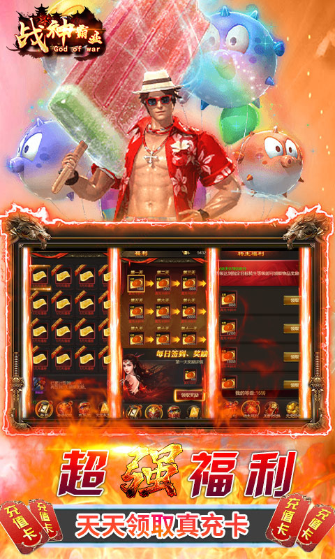 《战神霸业-爆十万真充》是款还原经典传奇大型arpg挂机类手游。经典传奇,回味无穷!上线送vip15、100w元宝,绝版特效动态武圣时装!全图爆10w真充,壕领价值8888极品装备道具!每日登录畅领无限真充卡,轻轻松松做土豪!BOSS无限爆元宝、真充卡,应有尽有!超变态无敌资源千倍返利,全新珍宝阁一折购!最强福利传奇,邀你来战!