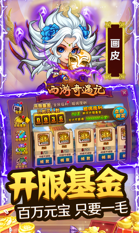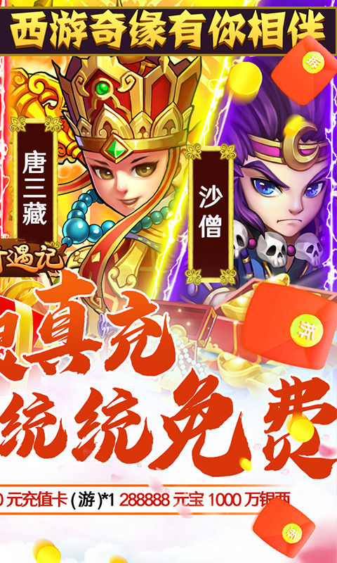 全新西游策略卡牌大作《西游奇遇记-GM无限真充》震撼来袭!丰富的策略战斗,全新奇妙玩法让游戏告别枯燥无味!合击斗法,一秒制敌!带着上古神器的你,也必定是那救三界苍生于水深火热的救世之人!!上线就送无极魔尊VIP,500元充值卡(西)*1,500元充值卡(游)*1,288888元宝,1000万银两,让你体验到极品开局带来的无限快感!道具回收功能,让你彻底摆脱无用道具占仓库的烦恼,只需一点,即可回收道具,最高5000元换充值红包!登陆即可免费领取充值卡,最多可领取十万元充值卡!开服基金1毛购,1000倍返利,累计可获得100万元宝!