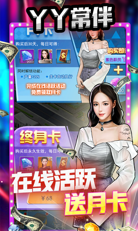 ★创角后在线1小时,免费送月卡;丫丫伴你,王道开局!