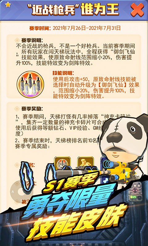 ★创新赛季玩法,每周开启,刷怪爆真充,闯天梯赢限量技能皮肤