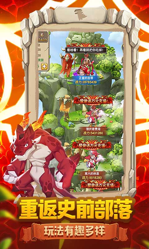 重回探险,荣耀回归!《疯狂酋长-送万元充值》正版授权原始题材回合制手游,携万元充值壕礼福利来袭!开局升级送1000元福利,登录再送万元充值,免费升级满级VIP,全新超爆福利助力少年探险原始时代!各个伙伴自由召集,在原始部落之间,为了争夺资源领地,进行征战。萌宠集结,游戏内可驯服百种动物,点击方寸之间打造最强战队,一起踏上未知而精彩的冒险旅程。策略、建造、捉宠、驯服、宠物打书、竞技PK等玩法应有尽有,进入游戏即可一起畅爽神秘冰川世界。