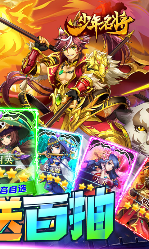 少年狂欢季,抢百万豪礼。全新三国RPG炫技卡牌手游《少年名将-送巅峰阵容》,全新天金神将携手史上最强福利强势来袭!超然万物的天金神将,带你角逐三国之巅;巧妙搭配你的元素灵石,解锁全新的御灵之术;还有海量限时活动,百万福利大派送,助你轻松攻守城池,一统三国江山。