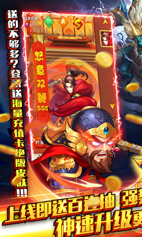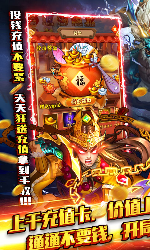★首充1:3000,首充即送神将,全套橙装,还有280充值卡!开局人人都是大佬!