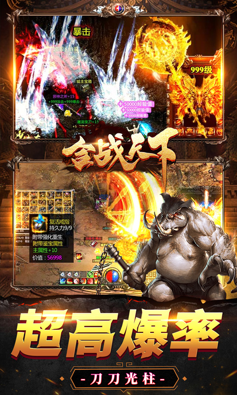 《合战天下-新热血合击》是一款复古类型的三职业传奇手游,游戏创新性地加入了极具体色的合击玩法,给玩家不一样的传奇体验,同时全面提高游戏爆率,让玩家怪怪爆光柱,轻松出终极,别再犹豫赶紧进入游戏一起打怪爆装备吧!
