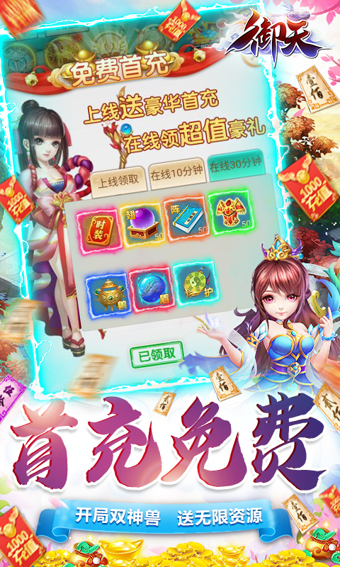《御天-GM全免万充》是一款全新挂机玩法经典回合制手游,挂机无限爆充值卡。开局送神兽上古虚鲲、送神兽朱厌。全民刷BOSS狂爆10000元充值卡碎片!上线即送VIP8登录大礼直升VIP21,3档豪华首充免费领,天天挂机小怪无限爆充值卡,海量元宝领到手抽筋!天天好友互动领超值豪礼!月卡只需1元,捉鬼历练必定7星!0元豪华礼包,天天领到手抽筋!更有多达数十种的多人PVP、PVE玩法,大型跨服对抗玩法,让你和你的小伙伴能享受全方位的互动感受,称霸上古神话时代!