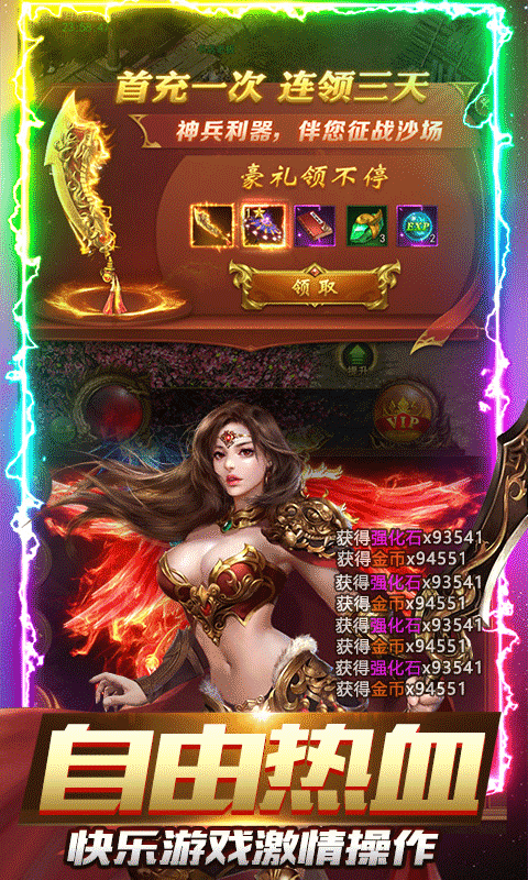 单日累计充值返利(返利次日自动发放,道具自动发放)