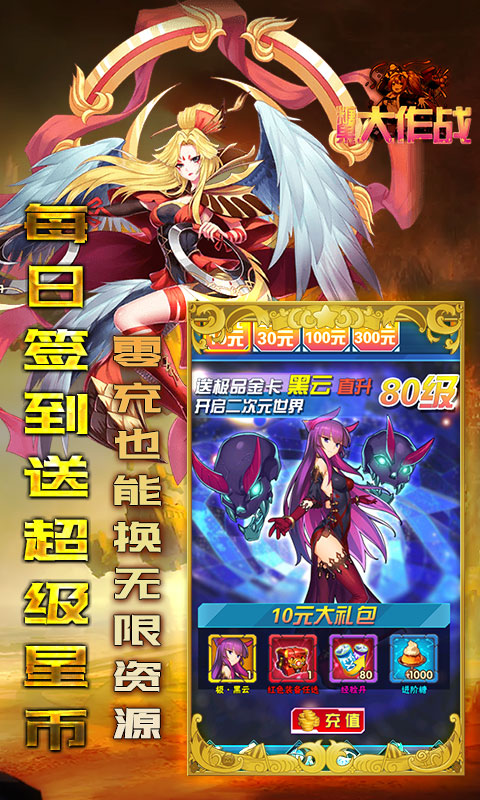 ★上线送至尊V、千万钻石、金币,登录就送千元真充卡。