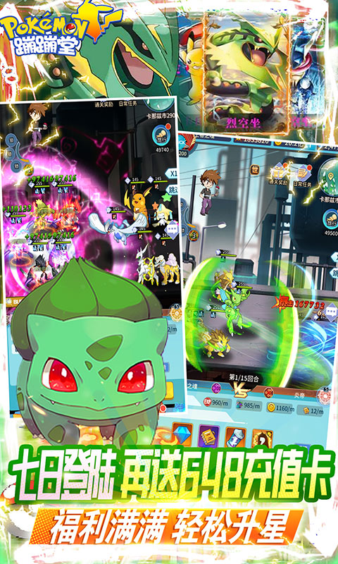 《蹦蹦堂-送五星阿尔宙斯》一款经典卡通风格冒险手游。再现经典,多张地图,多样玩法,联盟大会、秘境探险,带着你的小精灵一起去游戏中展开探险,成为训宠大师。丰厚福利,传说神宠-阿尔宙斯,登陆就送。输入代码:bbtvip,立即领取万元充值。所有VIP礼包只售1钻石,海量奖励轻松获得。