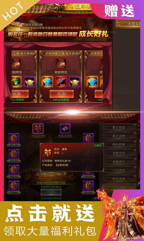 ★累计登陆即领2W红包助力!无限转盘,无限抽真充!无限BOSS爆充值!直升满级GM,GM商城只需1钻,真GM!真福利!