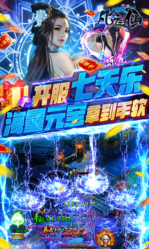 上线既送尊享VIP12、超级VIP, 赠送888888元宝,3000万铜钱,千元真充卡!《凡人飞仙传-1元商城版》是首款跨服空战仙侠游戏,无需充值!签到领取免费真充卡。一个山村穷小子逆天成仙,创新无限制浮空玩法、御剑飞行,瞬间跨越千山万水;数百种仙法魔功、千人同屏,华丽特效呈现爆燃仙界大战。更有华丽时装、法宝灵兽等百变玩法,带你畅游最精彩的仙侠世界。