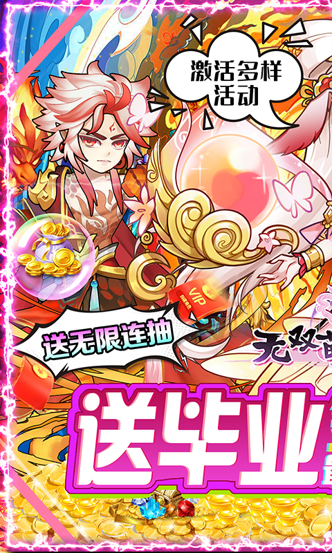 ★创角即送:VIP10,满星英雄包*1(使用后获得英雄穆桂英以及免费赠送升满星,满觉醒的材料),1元真充卡*648,勾玉*10W,铜钱*500W