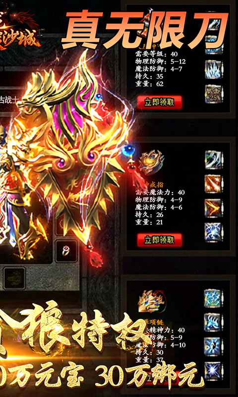 《屠龙决战沙城-冰雪无限刀》上线送贪狼特权,绑定大米18888,30万元宝,30万绑元,开局满攻速,真无限刀,所有地图无限制,想进就进,特色狂暴系统,打怪爆率秒升100%,满屏光柱,装备全靠打,小怪爆终极,游戏内所有装备保值,高阶神装回收、进阶、融合、交易,全自由支配,更有极品吸血玉佩,打怪回血不用愁,特色沙捐提升永久爆率,鸡王争霸谁与争锋