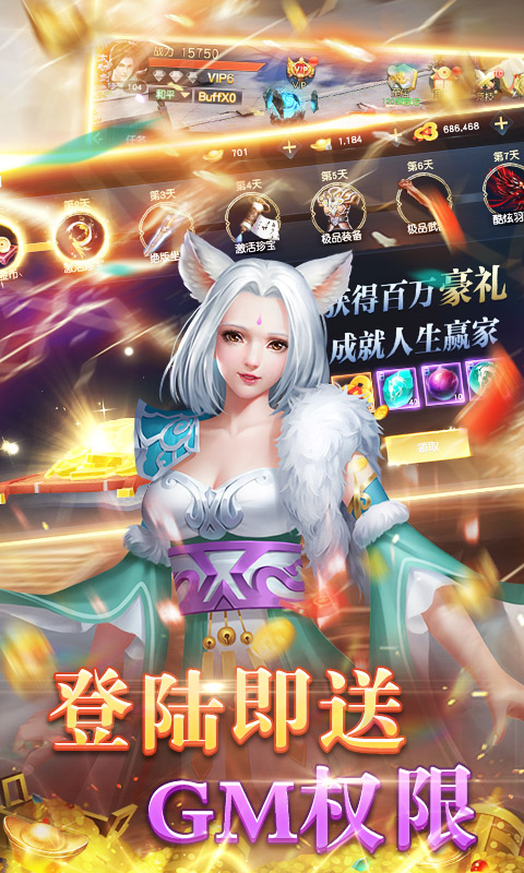 ★上线送VIP5、18888元宝、1千万铜币、“有钱就是任性”称号、