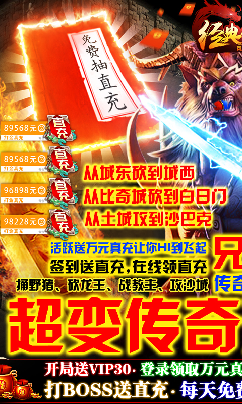 ★打BOSS送直充券、签到送直充券、在线领直充券、每天免费抽直充券、每日活跃送直充券,真实免费直充,豪礼领不停,根本不需要充值!