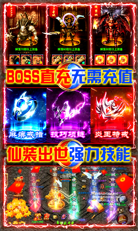 ★仙装出世,击杀boss完成任务即可获得全套仙装,激活强力技能。