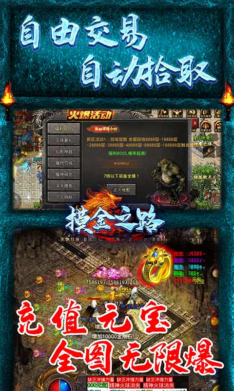 《摸金之路-冰雪无限刀》单职业经典复古冰雪传奇。游戏开局送绝版戒指,首充十元送全屏拾取功能,平民玩家也能玩得爽!所有装备均可掉落!主要玩法以升级、爆装、攻沙为核心,实现自由交易、一键回收等真实的传奇精彩玩法!喜欢冰雪复古玩法的玩家绝不能错过哦!